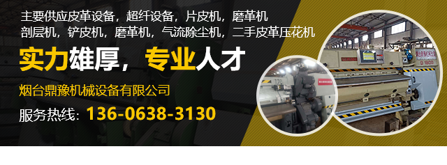 煙臺鼎豫機械設(shè)備有限公司位于山東省煙臺市芝罘區(qū)楚玉路238號泰和工業(yè)園,我公司主要經(jīng)營皮革機械設(shè)備,超纖設(shè)備及配件的生產(chǎn),銷售。我們有好的產(chǎn)品和專業(yè)的銷售和技術(shù)團隊,主要供應(yīng)皮革設(shè)備,超纖設(shè)備,片皮機,磨革機,剖層機,鏟皮機,磨革機,氣流除塵機,二手皮革壓花機。我們具有專業(yè)維修國內(nèi)外各種型號精密片皮機的技術(shù)和能力,承攬大中小維修機械的業(yè)務(wù)。定制各種型號帶刀、砂輪等。